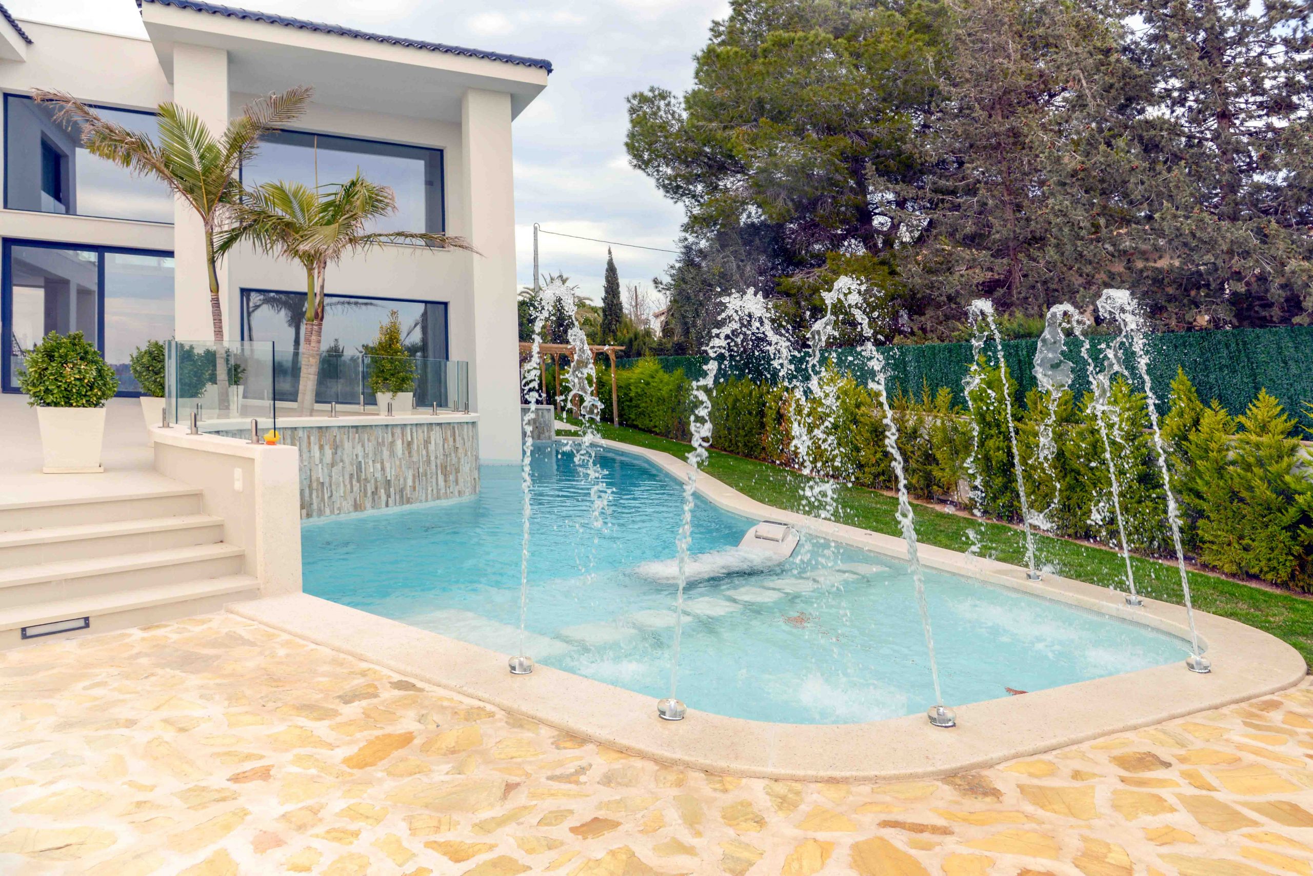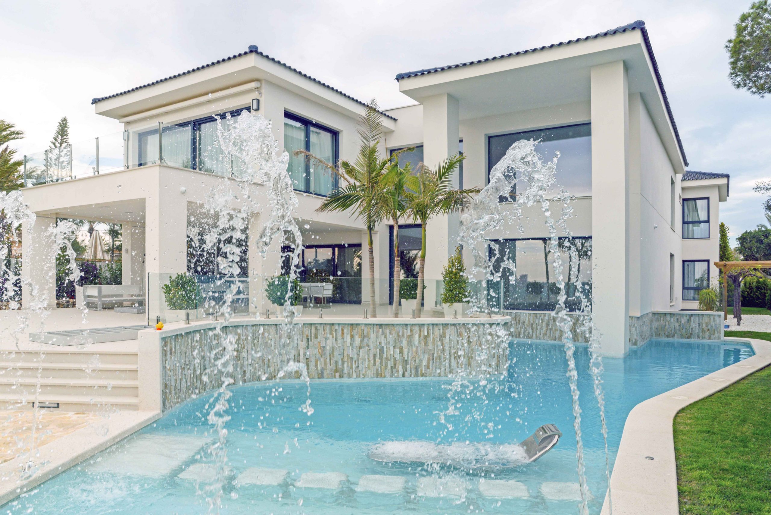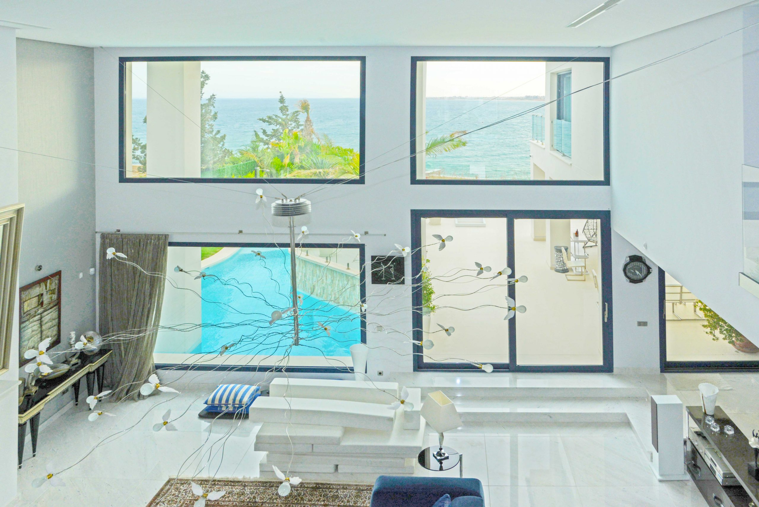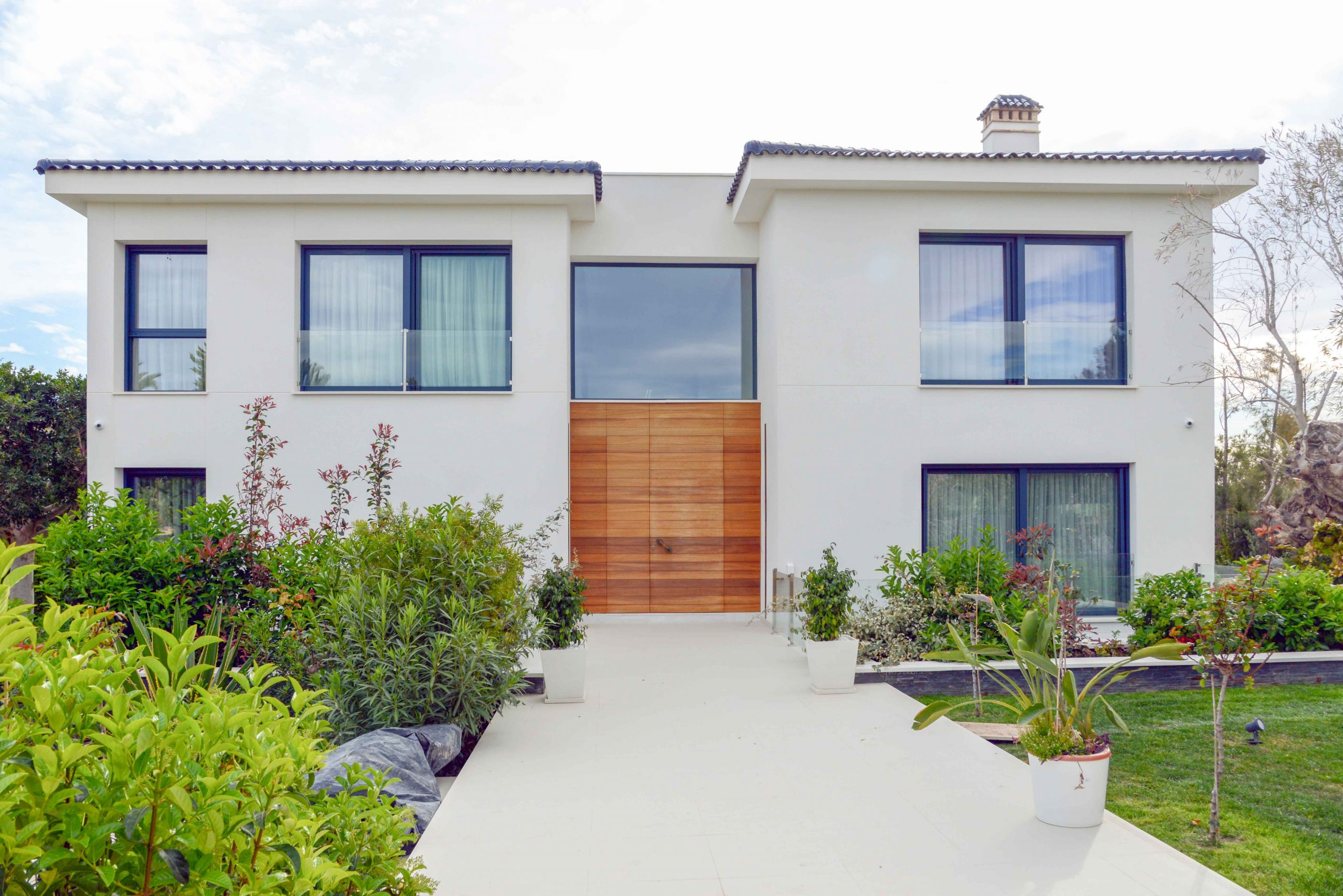 Las ventanas de esta vivienda unifamiliar en Orihuela Costa son de aluminio de la marca Schuco de color Antracita con sistemas elevables y abatibles de 80 mm de fondo de la máxima calidad.